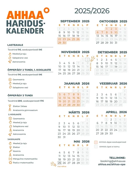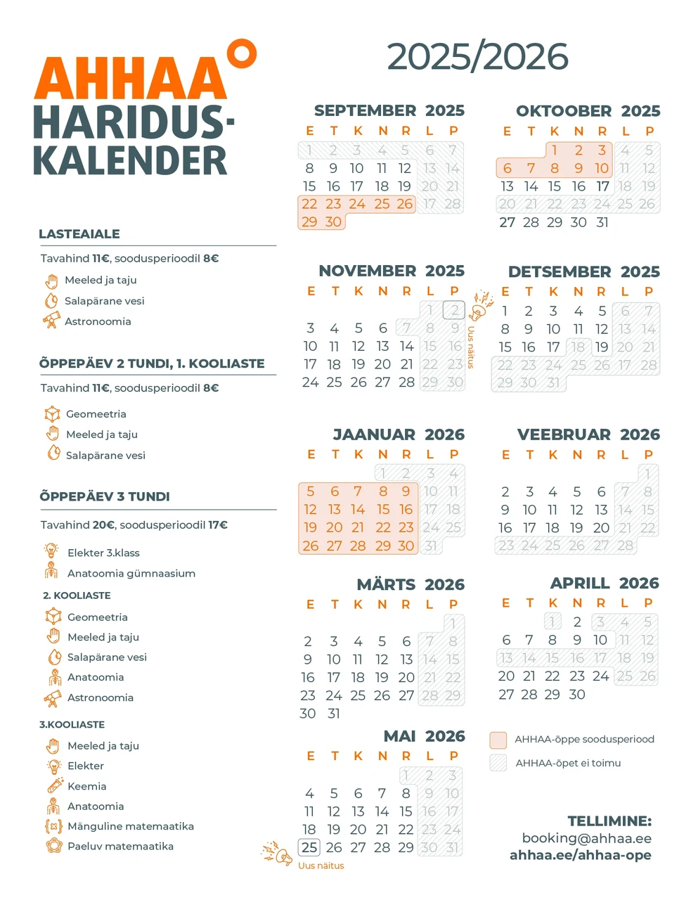 - Kontakt: 5749 4878 või booking@ahhaa.ee
